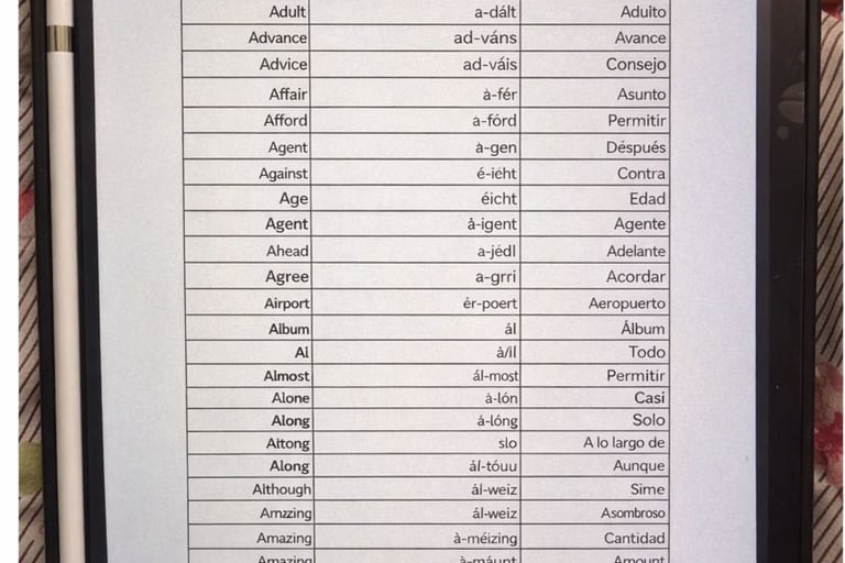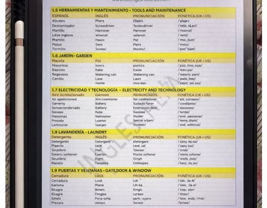 Vocabulario esencial nivel básico e intermedio. Incluye pronunciación adaptada para hispanohablantes.